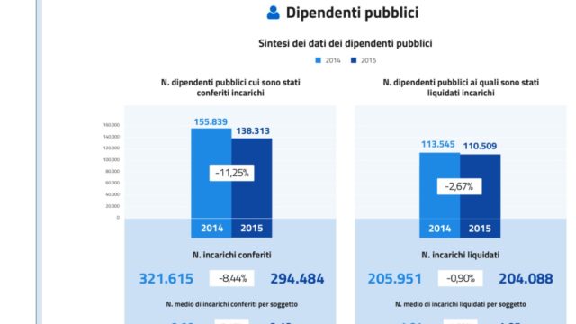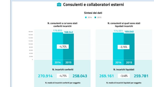 Al 2015 i dati degli incarichi conferiti e liquidati ai dipendenti pubblici e ai consulenti e collaboratori esterni su http://www.consulentipubblici.gov.it/