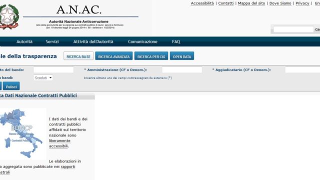 La Banca Dati Nazionale Contratti Pubblici era già liberamente disponibile dal 2012 mediante le funzioni di consultazione del portale dei Bandi e dei contratti pubblici (portale Trasparenza) nella sezione dei servizi online del sito dell’ANAC. A seguito di una ricerca per Oggetto, Stazione Appaltante, Aggiudicatario o CIG, sia per Bandi di gare attivi che scaduti, il sistema restituisce le informazioni relative alla Pubblicazione, Affidamento e alle successive fasi di Esecuzione e Collaudo dei contratti di lavori, servizi e forniture ma non quelli relativi agli “accordi bonari“, “sospensioni“, “varianti“, e “subappalti” secondo, invece, quanto disposto dall’art. 8 co. 1 del D.L. 7 maggio 2012, n. 52 (convertito in legge, con modificazioni, dall’art. 1, co. 1, L. 6 luglio 2012, n. 94) che fa riferimento a quelli ricevuti dalle stazioni appaltanti in adempimento agli obblighi di comunicazione all’Osservatorio previsti dal soppresso D.lgs. 163/2006 e individuati nel dettaglio dal Comunicato AVCP del Presidente del 4 aprile 2008 e s.m.i. Ne è una prova visiva documentata quanto riportato qui.