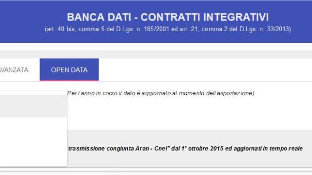 Nella sezione Open Data è possibile esportare (con aggiornamento in tempo reale) in formato csv l’intero archivio dal 1° ottobre 2015 al 2017. Infatti, una nota spiega che per l’anno in corso il dato è aggiornato al momento dell’esportazione. Dei documenti scaricabili è riportato il relativo link di riferimento del sito Aran consultabile dal cittadino e recuperabile dall’Amministrazione per sostituire la pubblicazione degli stessi dati sul proprio sito istituzionale. Nell’immediato futuro sarà possibile esportare i dati per singola amministrazione, per territorio di riferimento, e anno di trasmissione.