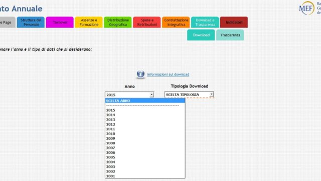 I lavori sono fermi a quanto dichiarato in precedenza, ossia che dal 13 Febbraio 2017 il sistema consente a chiunque, selezionando nella sezione ora rinominata Download e Trasparenza l’anno e l’amministrazione di interesse, di ricevere via email tutti i dati (in formato csv) che quest’ultima ha comunicato a partire dall’anno 2007 (fino al 2015) in riferimento al titolo di studio, retribuzione media, passaggi di qualifica, occupazione, modalità lavoro flessibile, formazione, fasce retribuzione, età ed età media, distribuzione geografica per comparto, costo lavoro, contrattazione integrativa, comandati, fuori ruolo ed esoneri, cessati e assunti, assenze e media delle assenze, anzianità e anzianità media