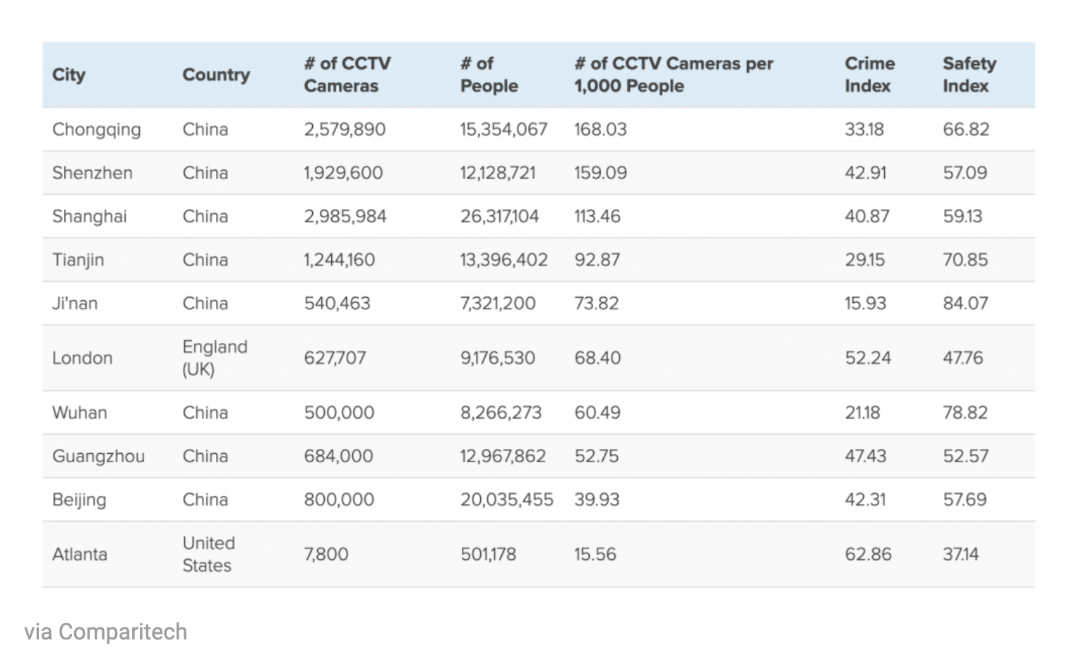 E secondo la British Safety Industry Authority (BSIA) nel 2013 nel Regno Unito erano attive 5,9 milioni di telecamere di sorveglianza.