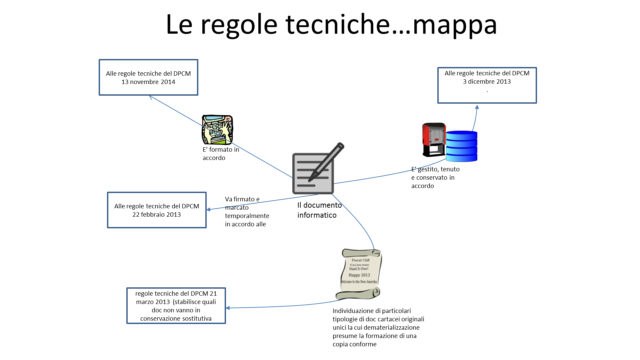 Tali regole tecniche sono, infatti, le ultime in scadenze tra quelle che rappresentano l’ecosistema della digitalizzazione documentale e che possiamo riassumere nella figura seguente