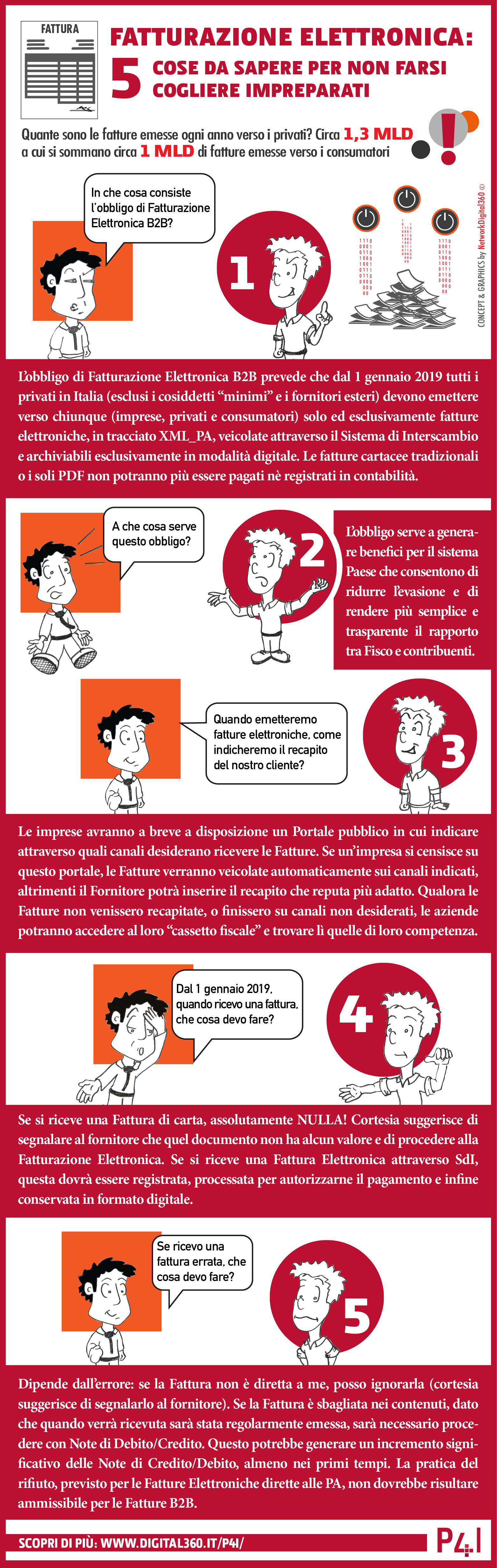 L’obbligo di Fatturazione Elettronica B2B prevede che dal 1 gennaio 2019 tutti i privati in Italia (esclusi i cosiddetti “minimi” e i fornitori esteri) devono emettere verso chiunque (imprese, privati e consumatori) solo ed esclusivamente fatture elettroniche, in tracciato XML_PA, veicolate attraverso il Sistema di Interscambio e archiviabili esclusivamente in modalità digitale. Le fatture cartacee tradizionali o i soli PDF non potranno più essere pagati né registrati in contabilità.