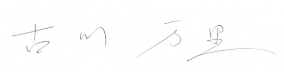 Firma con ideogrammi giapponesi e firma in caratteri latini