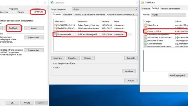 Sul piano pratico, la differenza tra un documento firmato adoperando un certificato ante-eIDAS ed uno, invece, eIDAS compliant è facilmente rilevabile, ricercando il certificato e le relative proprietà nelle Opzioni Internet di Windows, come da immagine:
