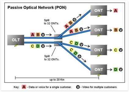Viceversa, un sistema PON è libero da parti attive nella sezione di rete di distribuzione, meno suscettibili a malfunzionamenti, determinando quindi un costo inferiore di manutenzione del sistema. Inoltre, è più efficiente poiché ogni fibra ottica può servire una molteplicità di utenti consentendo la distribuzione rapida e flessibile della fibra verso il mercato wholesale al minor costo di gestione e implementazione. La tecnologia attiva GPON poi, supporta la copertura del servizio a lungo raggio (fino a 20 km) superando i limiti della tecnologia di accesso basata su doppini in rame e riducendo i nodi di rete.