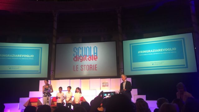 Lì, sotto una moderna cupola, in compagnia dei tre “audaci” piccoli alunni Matilde, Enrico e Daniele e alla presenza di un divertito pubblico, tra cui la ministra Fedeli, abbiamo letto i nostri versi in tweet scritti per il progetto poetico #ringraziarevoglio.