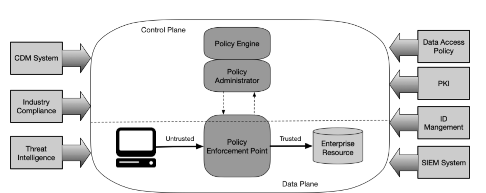 Per poter realizzare un’architettura di questo tipo è necessario definire le risorse (ovverosia un insieme di uno o più nodi di calcolo interconnessi tra loro) che richiedono un Policy Enforcement Point che ne medi l’accesso per assicurare che le politiche di sicurezza siano applicate in accordo a quanto richiesto dal control plane.