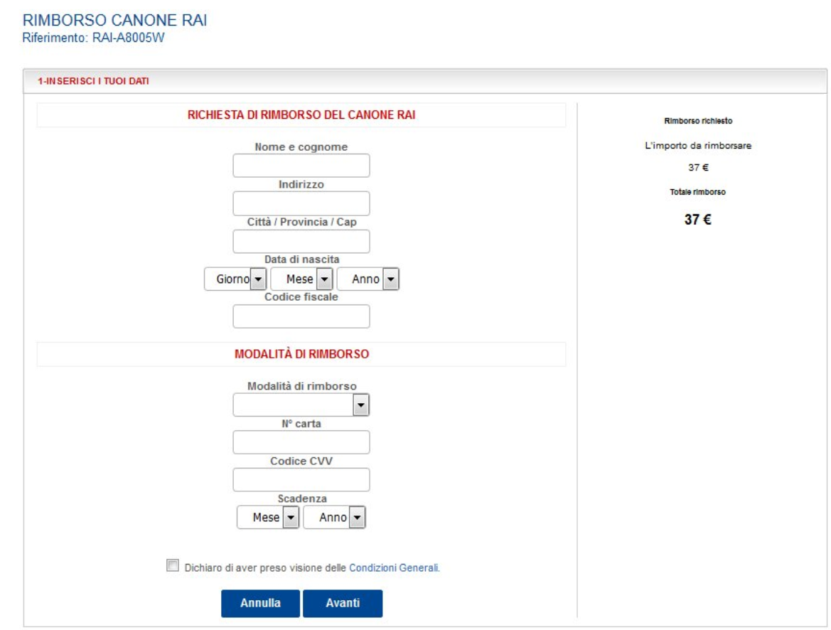Rimborso canone Rai
