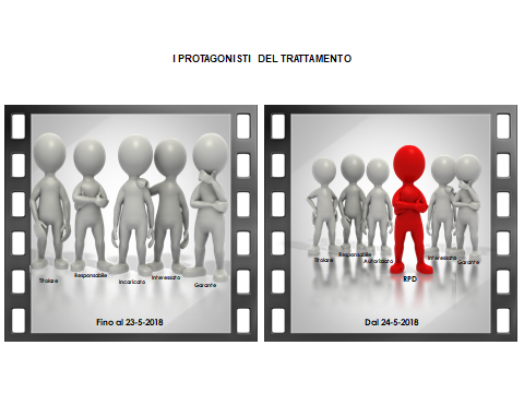 Se mettiamo a confronto la foto di gruppo dei protagonisti del trattamento dei dati personali in Italia, prima e dopo il 24 maggio, quale differenza notiamo? Non ci sono dubbi, il soggetto che prima di quella data mancava è proprio il Responsabile della protezione dei dati (RPD).