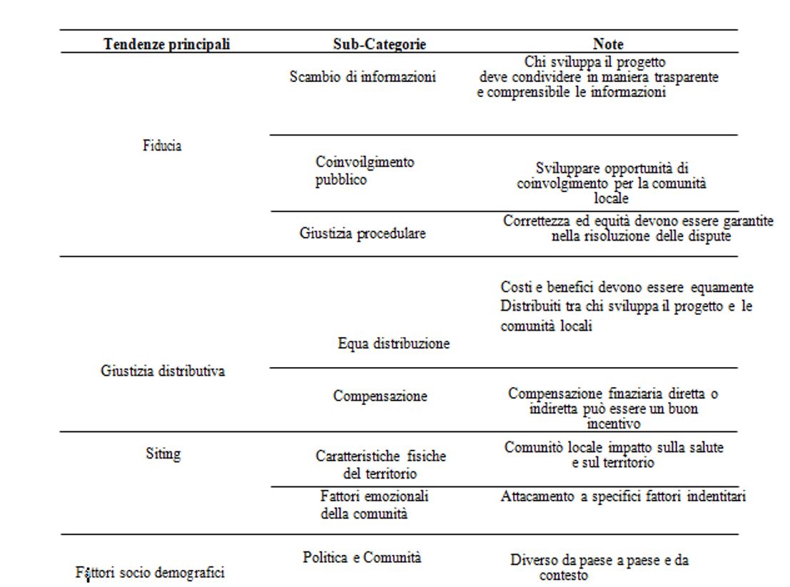 Un recente studio condotto da M. Segreto “Trends in Social Acceptance of Renewable Energy Across Europe—A Literature Review” (2020), prova a fare il punto di quello che è lo stato dell’arte degli studi e dell’impianto teorico sull’accettazione sociale delle FER in Europa. Lo studio include un’analisi qualitativa e comparativa di 25 casi di studio, in un arco di tempo che va dal 2001 al 2019, con l’obiettivo di identificare i principali fattori di accettazione sociale locale e generale dei progetti di energia rinnovabile nelle Comunità Europea, e creare al contempo una generalizzazione delle tendenze di accettazione sociale (social acceptance drivers) all’interno del contesto comunitario.