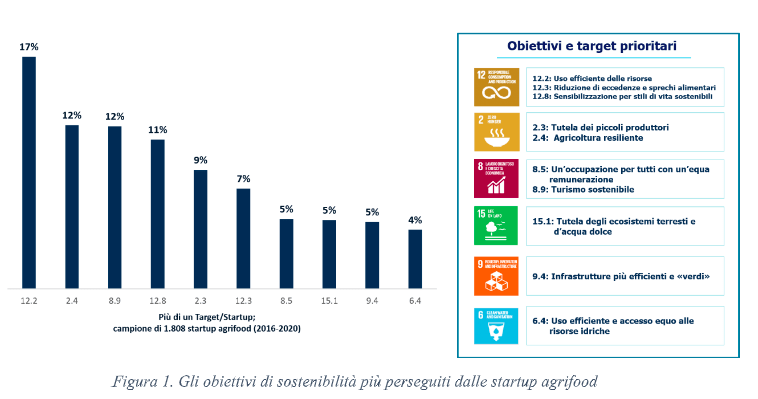 Figura 1 - Gli obiettivi di sostenibilità più perseguiti dalle startup agrifood